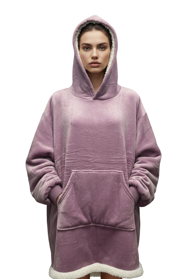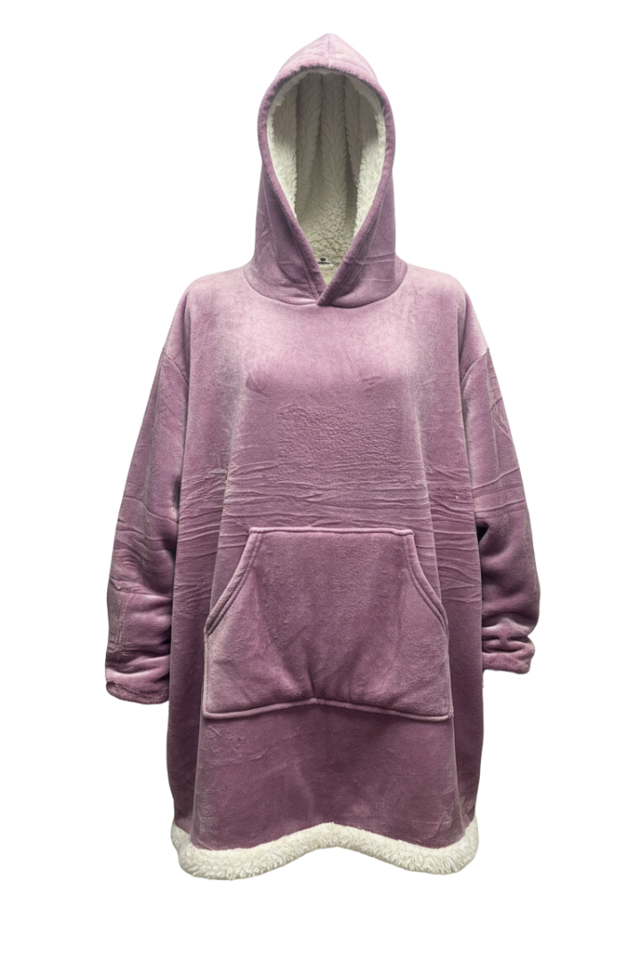 El Buzo Yeti Oversize Unisex en color Uva está confeccionado en polar térmico de alta calidad y forrado internamente con ovejero premium en todo su interior (incluyendo capucha, mangas y cuerpo), garantizando abrigo total y suavidad al contacto con la piel.